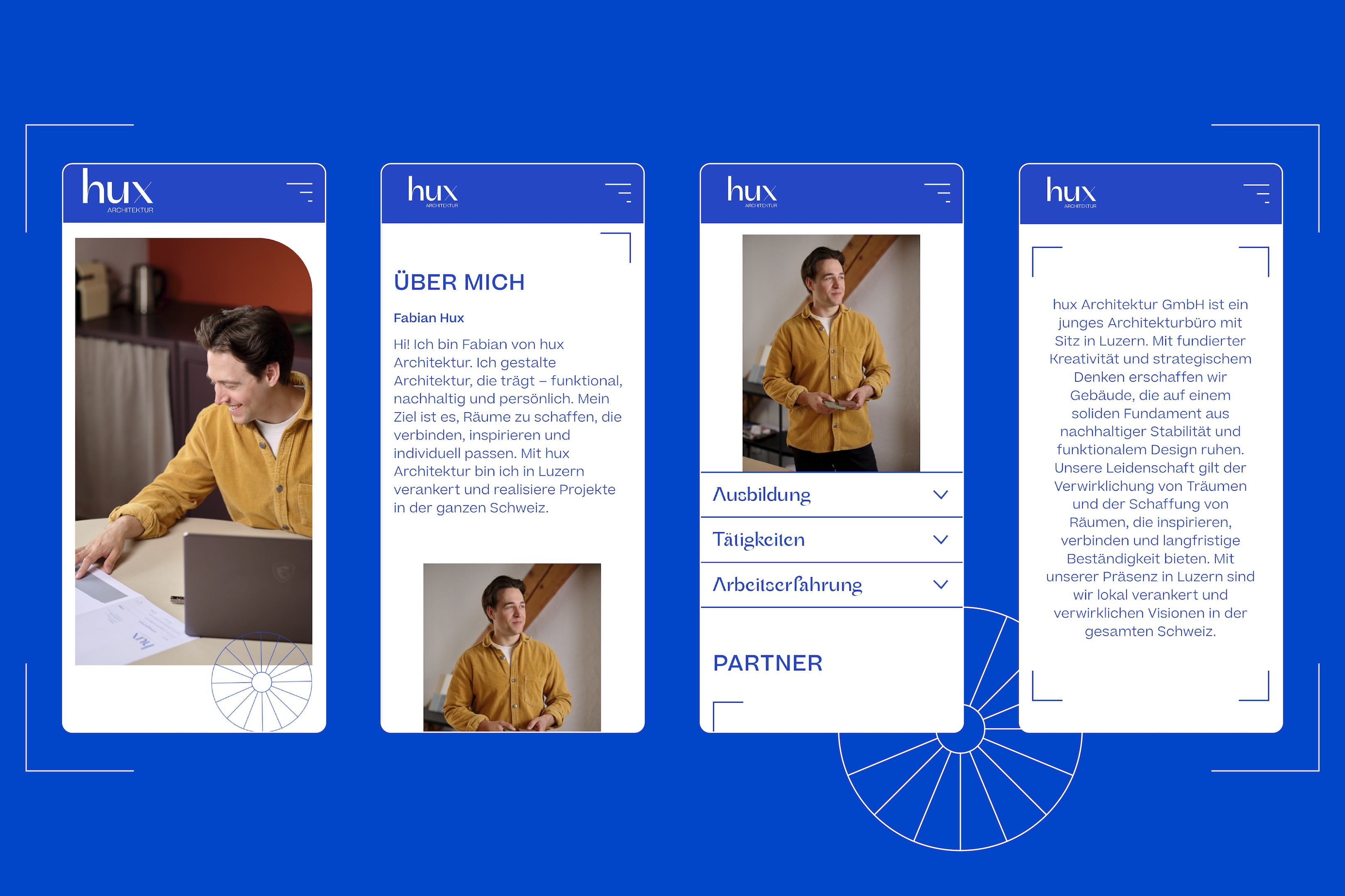 Für Fabian Hux haben wir Brand Strategy, Brand Design und Website gemeinsam entwickelt – mit klar definierten Werten wie Präzision, Klarheit und Fokus aufs Wesentliche. Das Branding übersetzten wir digital in eine elegante Bildsprache mit markanten Rahmen, Linien und Raster-Details, viel Weissraum und einem modernen Farb-Akzent. Inhaltlich führt die Website sauber durch Projekte, Angebot, Über uns und Kontakt, unterstützt von Load-on-Scroll und interaktiven Micro-Details, die dem Auftritt Energie geben, ohne die Architektur zu übertönen.
